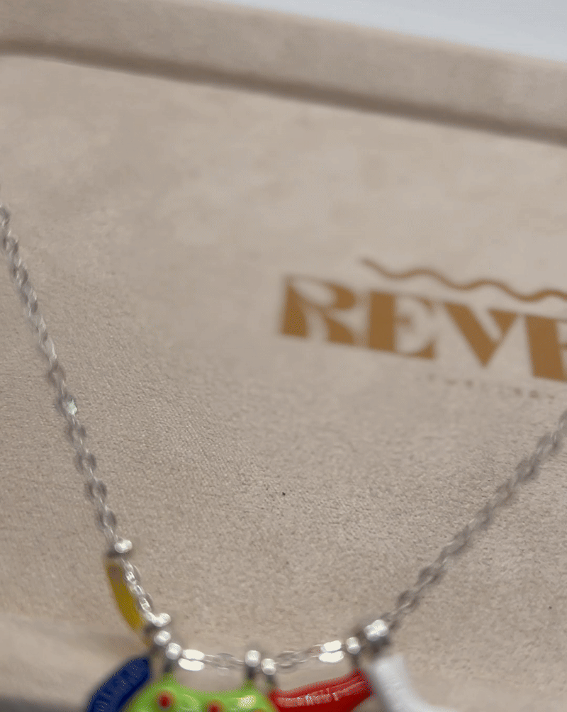 925 sterling silver chain with hand-painted enamel charms and a playful adjustable fit.