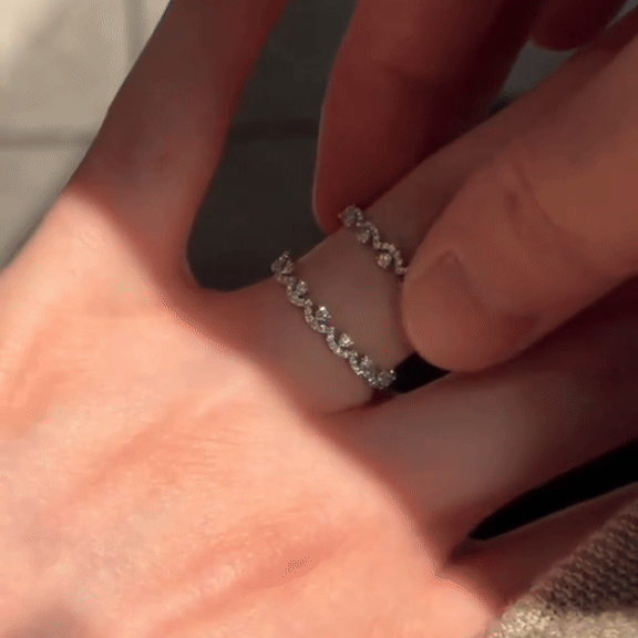 Sculpted in pure 925 sterling silver, this unique piece features two perfectly interlocking bands, designed to move as one, yet shine independently. Each curve is adorned with brilliant-cut AAA+ cubic zirconia, chosen for their diamond-like fire and flawless clarity.